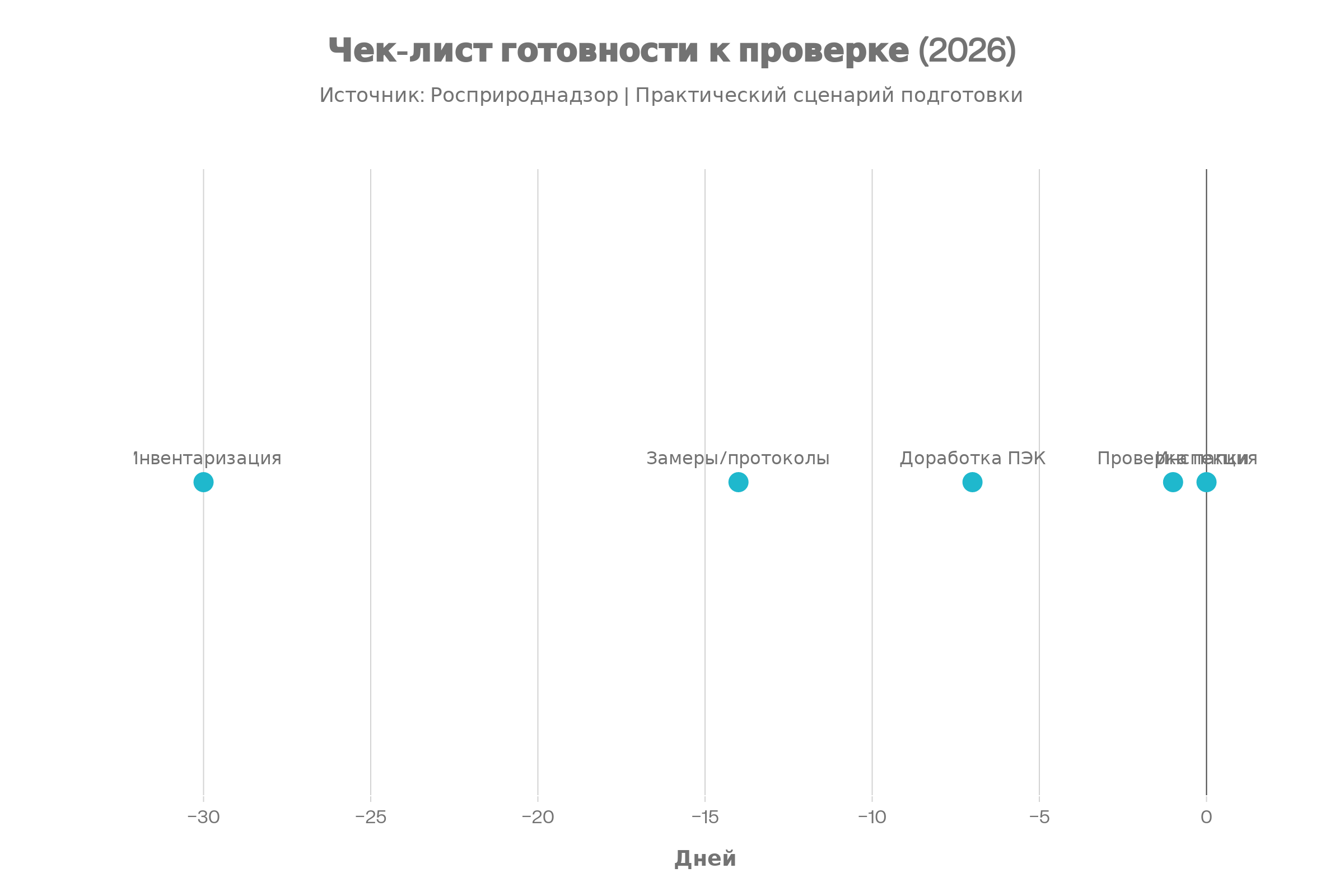 На практике это значит, что инспектору уже не нужно искать «всё подряд»: он приходит по чек-листу и быстро видит, где у предприятия слабое место. А для заказчика экологических услуг это хороший повод понять, какие именно услуги нужны прямо сейчас: аудит, инвентаризация, замеры, корректировка ПЭК, подготовка отчётности или сопровождение проверки.